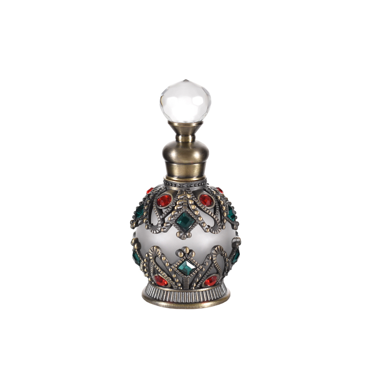 | Nome do produto | Garrafa de óleo essencial de Dubai Frasco de perfume retrô 15ml com diamante incrustado vazio recipiente de óleo essencial |