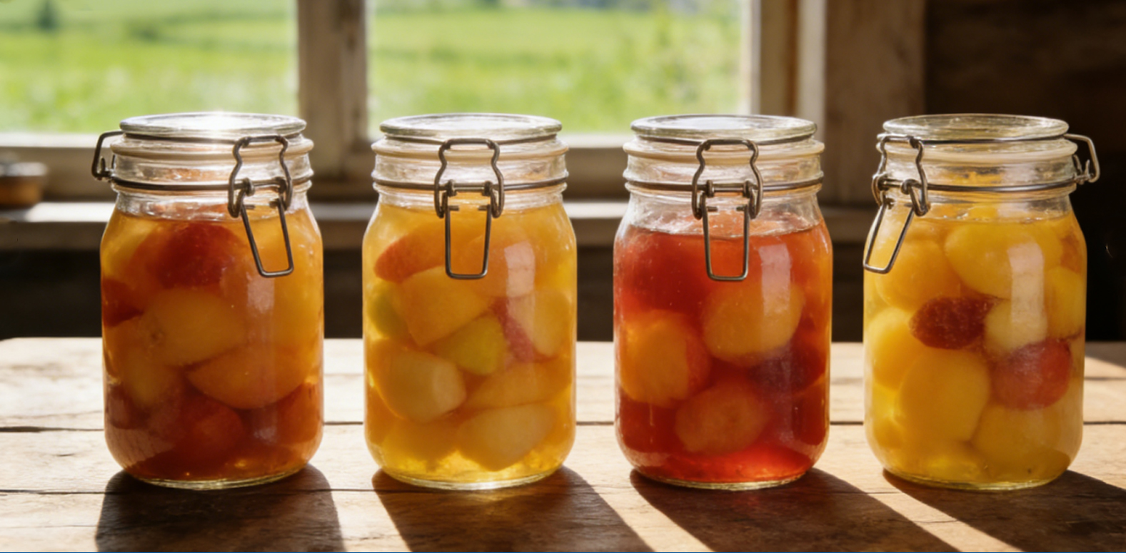 Frascos de conservas especiais (por exemplo, frascos Mason) suportam processos de enlatamento com água quente ou sob pressão, permitindo a preservação a longo prazo de frutas, vegetais, molhos e alimentos fermentados.